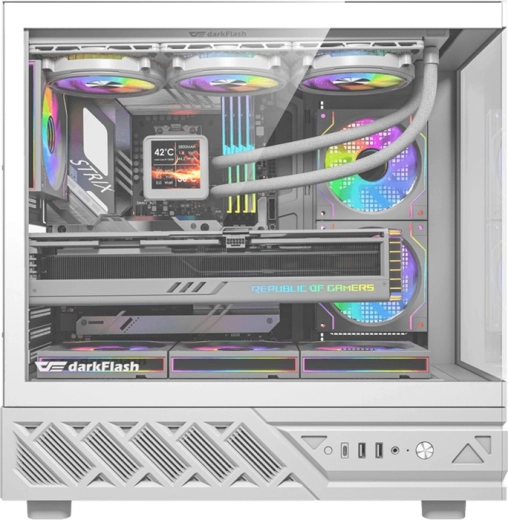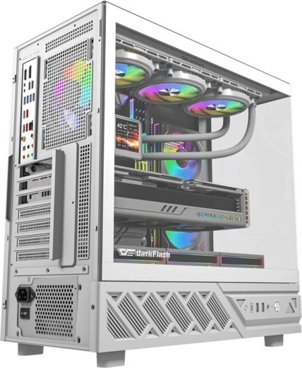 Le boîtier PC élégant DarkFlash DS950 en blanc offre une vue panoramique à 270° via verre trempé, un flux d’air de pointe et une connectivité riche incluant USB‑C 3.2 Gen 2. Il prend en charge les cartes mères ATX/M-ATX/ITX, accueille un GPU jusqu’à 400 mm et un ventirad CPU de 180 mm. Le coffret comprend 6 ventilateurs 120 mm préinstallés et des filtres à poussière pour un fonctionnement propre et silencieux.