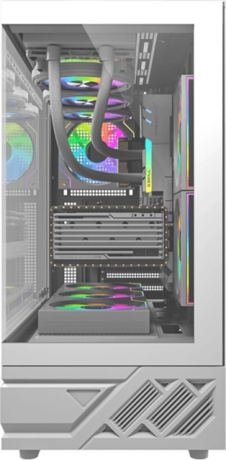 Des mailles denses et des filtres à poussière sur les côtés, l’arrière et le dessous favorisent un flux d’air efficace et maintiennent l’intérieur propre. Prise en charge jusqu’à 9 ventilateurs et radiateurs 360/280/240 mm.
