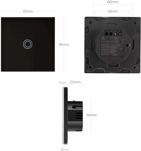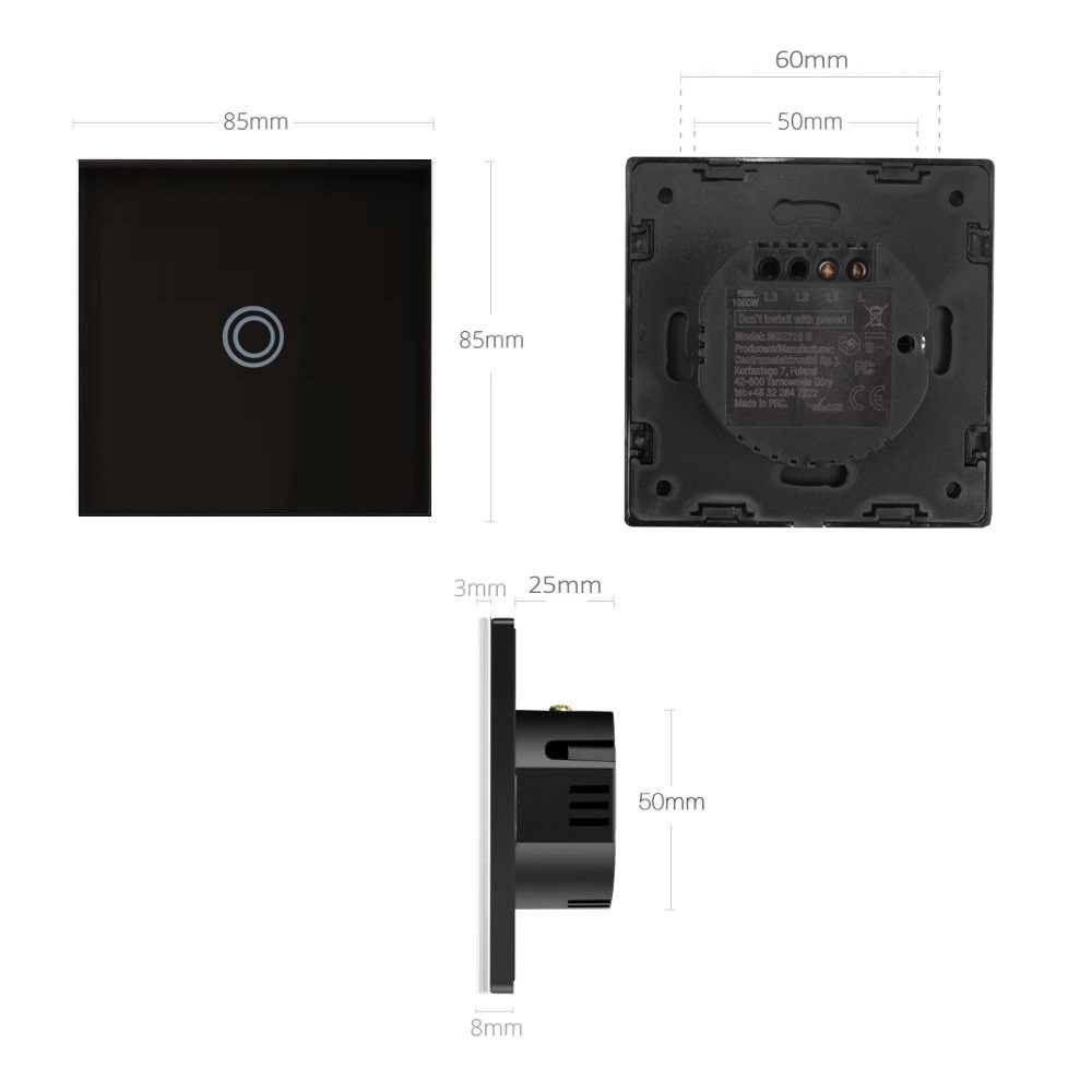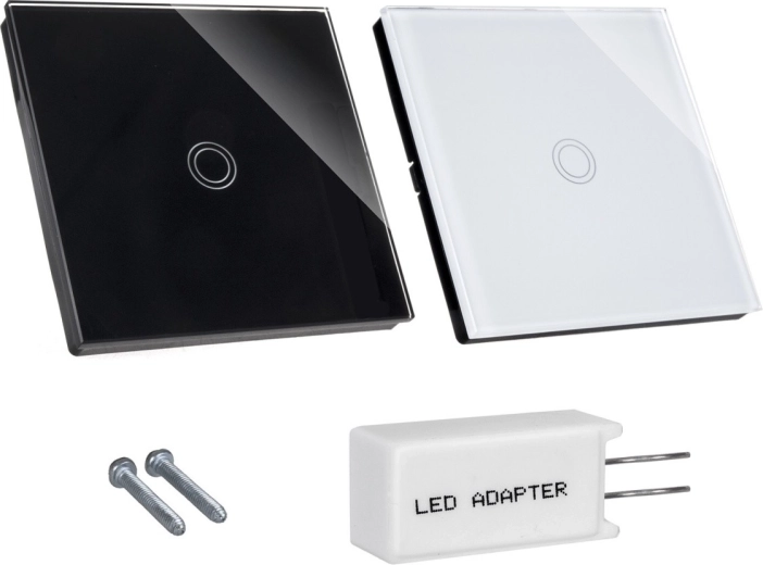 Élégant interrupteur tactile pour l’éclairage avec panneau en verre noir et rétroéclairage LED, alliant look moderne et praticité. Commande tactile capacitive, surface en verre trempé résistante aux rayures et construction résistante à l’eau idéales pour cuisines et salles de bain. L’interrupteur peut être utilisé comme unipolaire, va-et-vient ou croisé pour un contrôle confortable de l’éclairage.