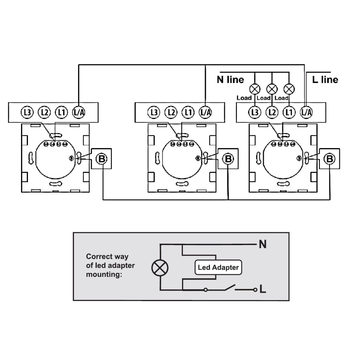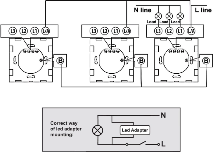 - Dans une boîte murale standard, borniers L/L1/L2/L3