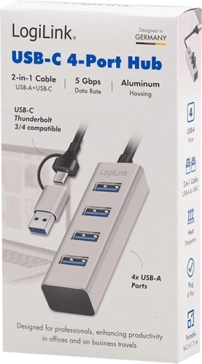 Augmentez le nombre de ports USB disponibles en un instant. Ce hub fin en aluminium transforme un seul port de votre appareil en quatre USB‑A rapides, idéal pour connecter claviers, souris, clés USB, lecteurs de cartes ou disques externes. USB 3.0 (USB 3.2 Gen 1) garantit une copie fluide de gros fichiers à des vitesses allant jusqu’à 5 Gbit/s.
