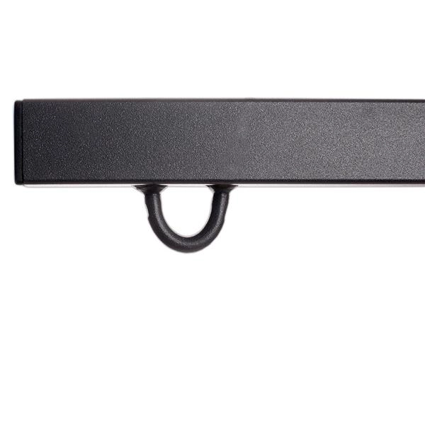 L’anneau soudé sous l’extrémité du bras permet d’accrocher rapidement et en toute sécurité le sac ou les accessoires. Le revêtement résistant protège contre l’usure.
