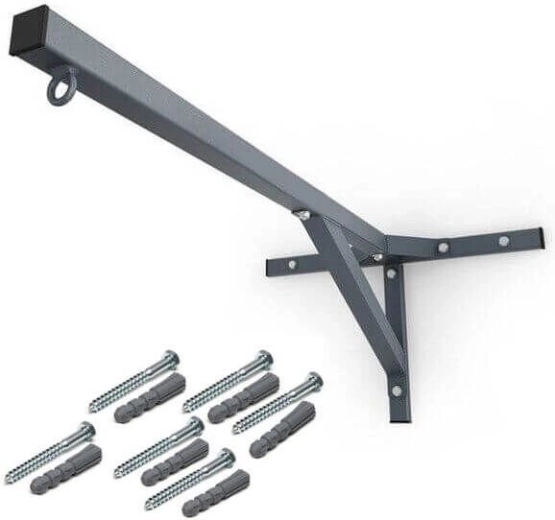 L’installation est simple – le support dispose de multiples points de fixation pour une fixation solide au mur et comprend un kit de montage. Avec une profondeur de 60 cm et une longueur de bras de 102 cm, il offre au sac un espace suffisant pour le balancement et une distance de sécurité par rapport au mur.