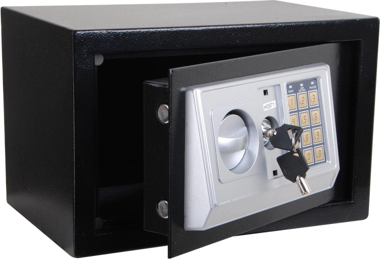 Coffre-fort numérique fiable aux dimensions extérieures de 310 × 200 × 200 mm, idéal pour ranger argent, documents, bijoux et autres objets de valeur. L’ouverture via le clavier numérique assure un accès rapide, tandis que la clé mécanique sert de solution d’urgence. La structure métallique robuste et le format compact permettent une installation sur une étagère, dans une armoire ou une fixation solide.