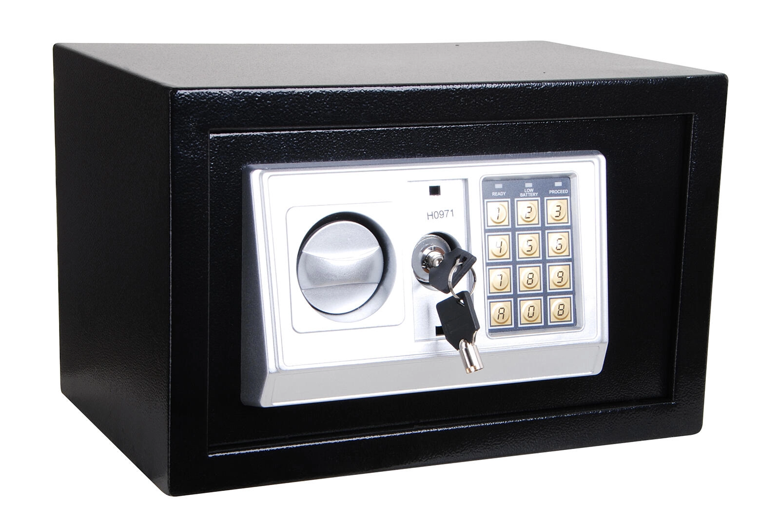 Coffre-fort numérique 31 × 20 × 20 cm avec code PIN et clé d’urgence