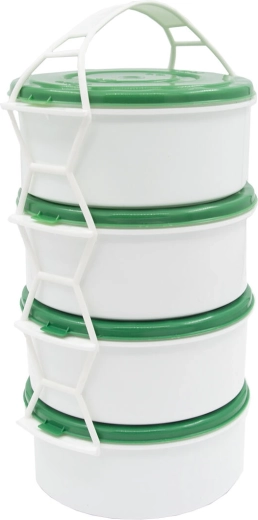 Ce porte-repas à plusieurs étages offre une solution intelligente et hygiénique pour emporter vos repas au quotidien au travail, à l’école ou en excursion. Quatre contenants séparés de 1 l peuvent accueillir une soupe, un plat principal, un accompagnement et un dessert, tandis que le cadre solide avec poignée assure un transport stable sans ouverture involontaire.