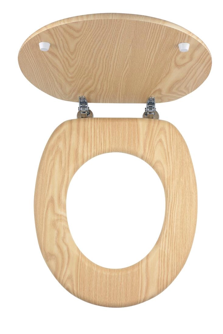 Abattant WC en MDF plaqué frêne avec fixations chromées