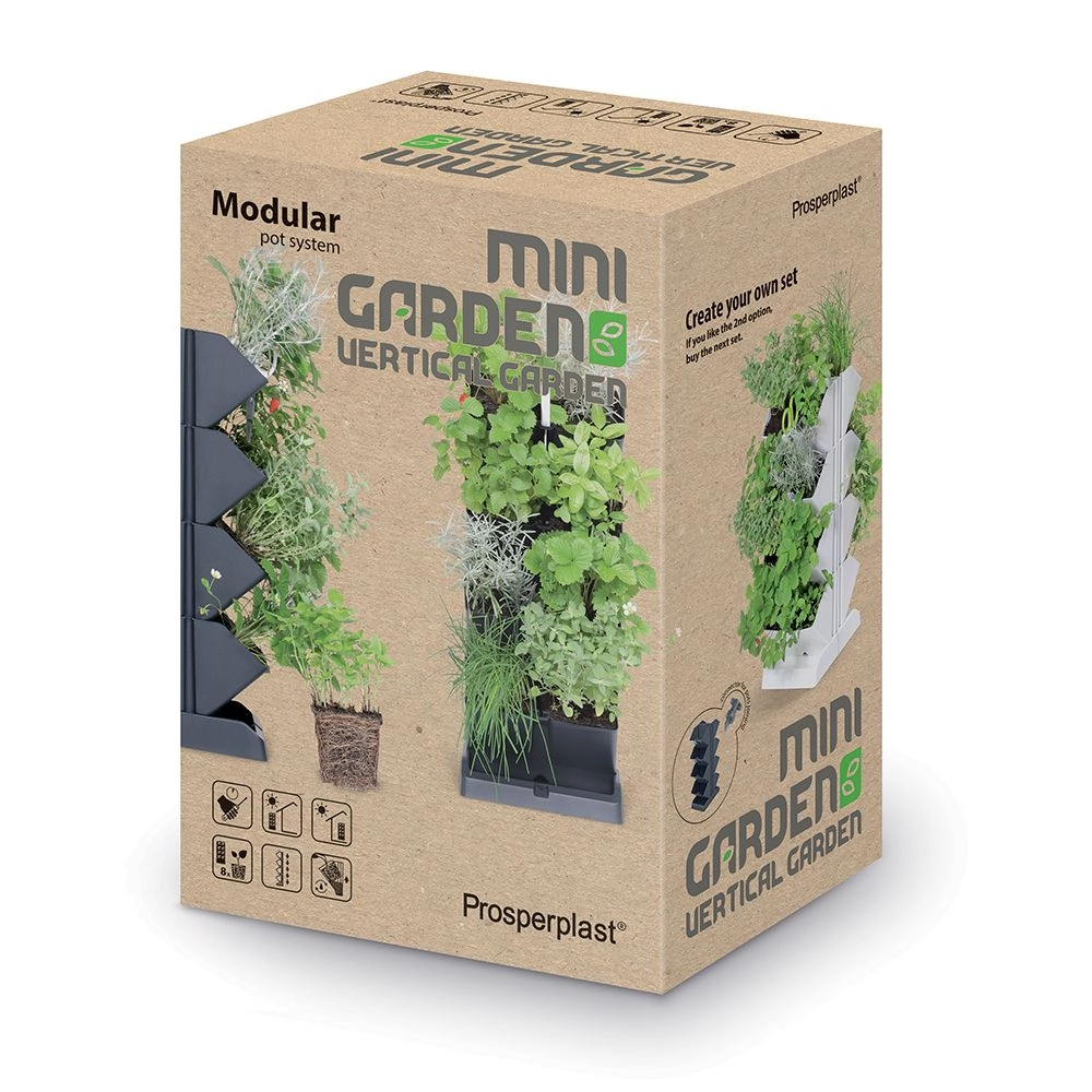 Transformez balcon, cuisine ou appui de fenêtre en oasis de verdure. Les jardinières verticales modulaires MINI GARDEN permettent de cultiver davantage de plantes sur une surface minimale, tandis que la teinte anthracite s’accorde aux intérieurs et extérieurs modernes. Grâce aux ciseaux à herbes fournis, vous avez toujours une récolte fraîche à portée de main.