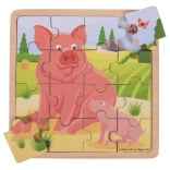 Adorable puzzle en bois représentant une truie et son porcelet, idéal comme premier puzzle pour les enfants dès 2 ans. Il comprend 16 pièces robustes qui se placent dans un cadre avec fond assorti pour une orientation facilitée. Les grandes pièces tiennent bien en main et l’assemblage favorise la motricité, la concentration, l’imagination et le vocabulaire. Fabriqué en bois de qualité issu de sources responsables, conforme aux normes de sécurité européennes.
