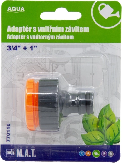 Adaptateur universel à filetage interne 3/4" et 1" de AQUA permettant un raccordement rapide et fiable d’un tuyau d’arrosage à différents robinets. Grâce à la combinaison des deux dimensions les plus courantes, il est pratique, résistant et facile à installer sans outillage spécial.