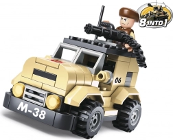 Le véhicule de patrouille de la série Sluban Army 8 en 1 est un excellent choix pour les petits comme pour les grands constructeurs. Des pièces de qualité et sûres en plastique ABS garantissent une longue durée de vie et une connexion facile. Une figurine innovante avec des parties rotatives et articulées apporte des scénarios de jeu plus réalistes.