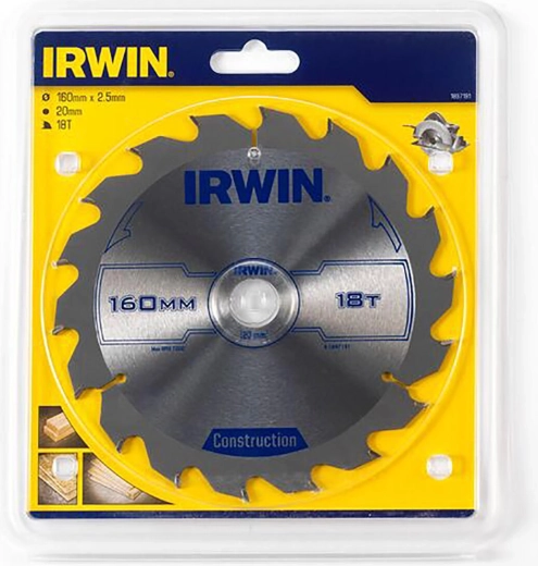 Lame de scie IRWIN de haute qualité, diamètre 160 mm avec 18 dents et coupe fine 2,5 mm, idéale pour des coupes rapides et nettes dans le bois, l’aggloméré et le contreplaqué. Grâce au profil ATB (biseau alterné) et au carbure de qualité industrielle, elle reste affûtée plus longtemps, tandis que les ouvertures de refroidissement et de dilatation réduisent la chaleur et la torsion pour des performances stables.