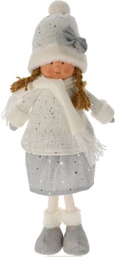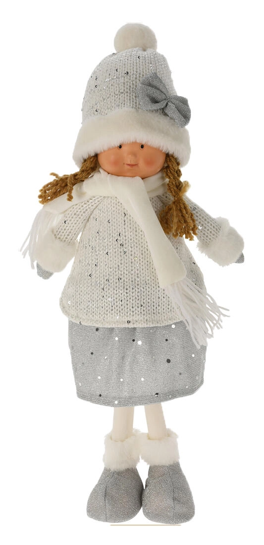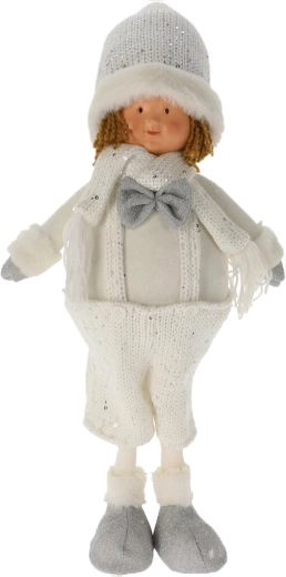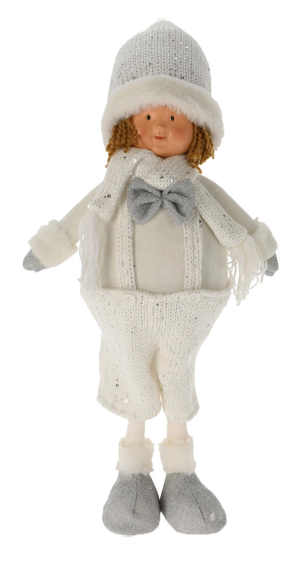 Adorable décoration hivernale sous forme de figurine debout de 49 cm, dans une élégante combinaison blanc-argent. En peluche douce avec un visage en polystone finement travaillé, elle crée une atmosphère hivernale féerique à la maison comme au chalet. Idéale pour une commode, une étagère ou la table de Noël.
