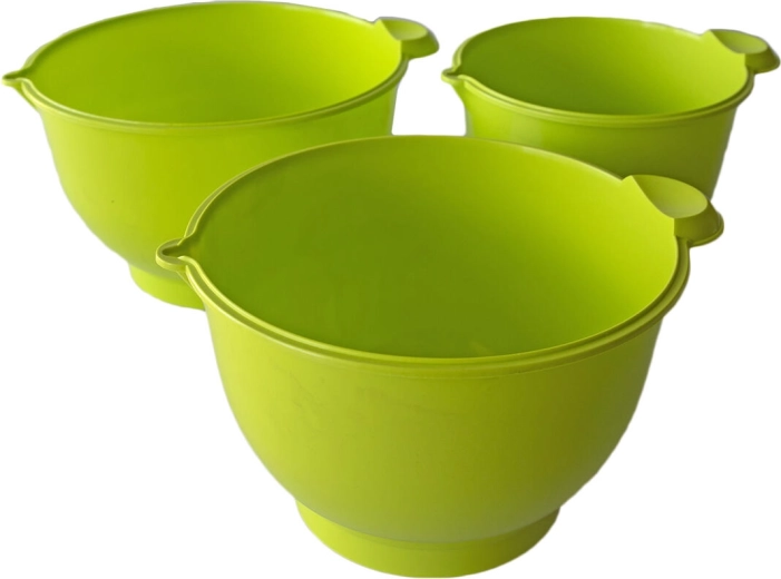 Pratique ensemble de trois bols à mélanger en plastique résistant avec base en caoutchouc antidérapante pour plus de stabilité et bec verseur intégré pour un versement précis. Idéal pour la pâtisserie, la préparation de crèmes et de pâtes. Empilables pour gagner de la place et faciles à nettoyer. Antidérapant, bec verseur, 3 tailles, entretien facile.
