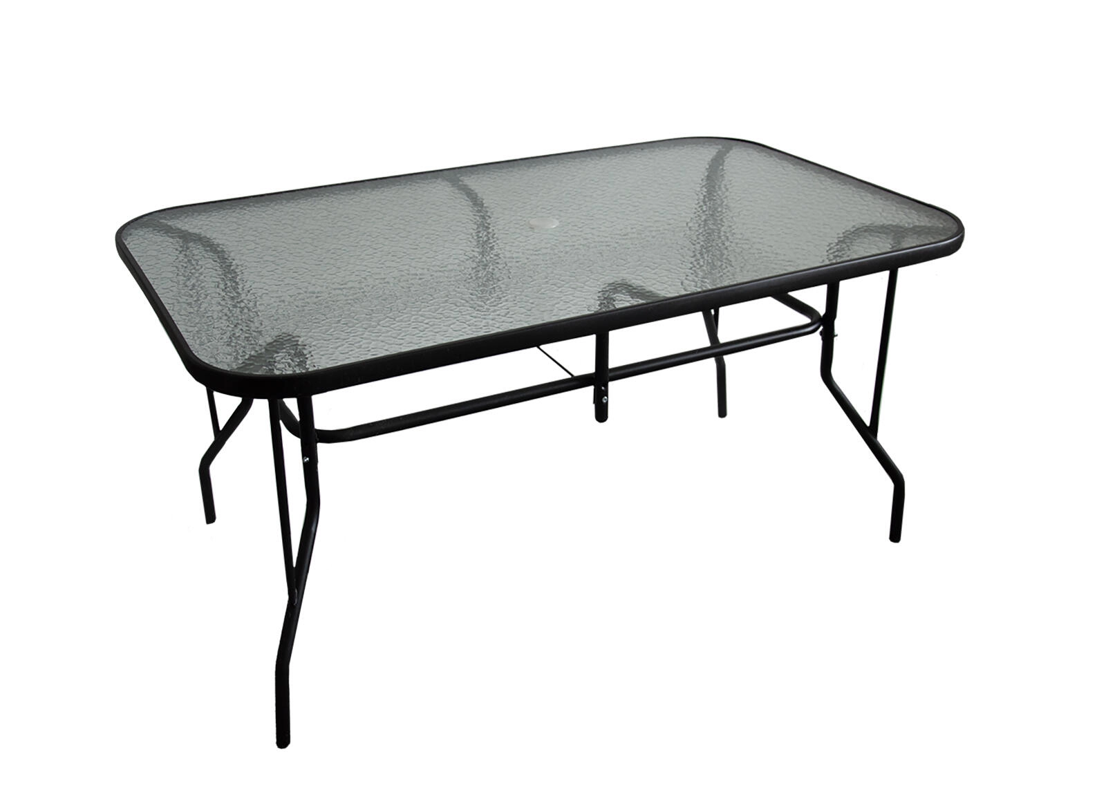 Plateau rectangulaire 150 × 90 cm en verre trempé de 5 mm avec texture décorative : résistant, stable et facile à nettoyer – idéal pour les repas en famille et les barbecues.