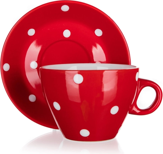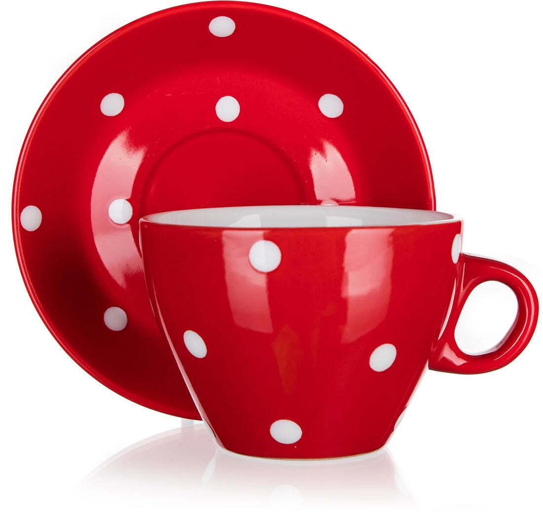 Tasse en céramique avec soucoupe 290 ml – rouge à pois