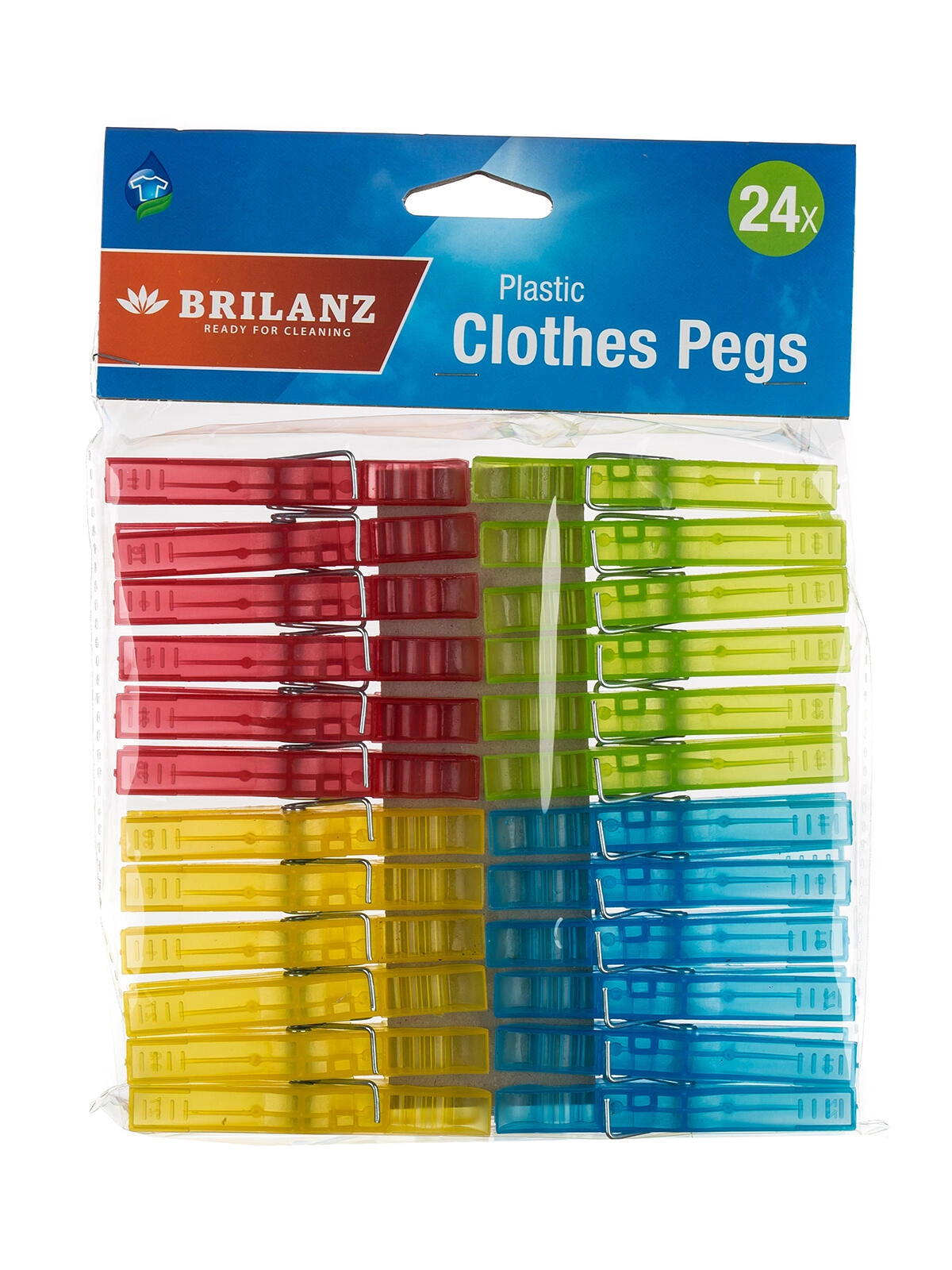Pratique ensemble de 24 pinces à linge en plastique en assortiment de couleurs (jaune, rouge, bleu, vert) pour une fixation fiable du linge sur la corde ou l'étendoir. Convient pour une utilisation intérieure et extérieure, avec un ressort robuste pour une prise ferme et une longue durée de vie.