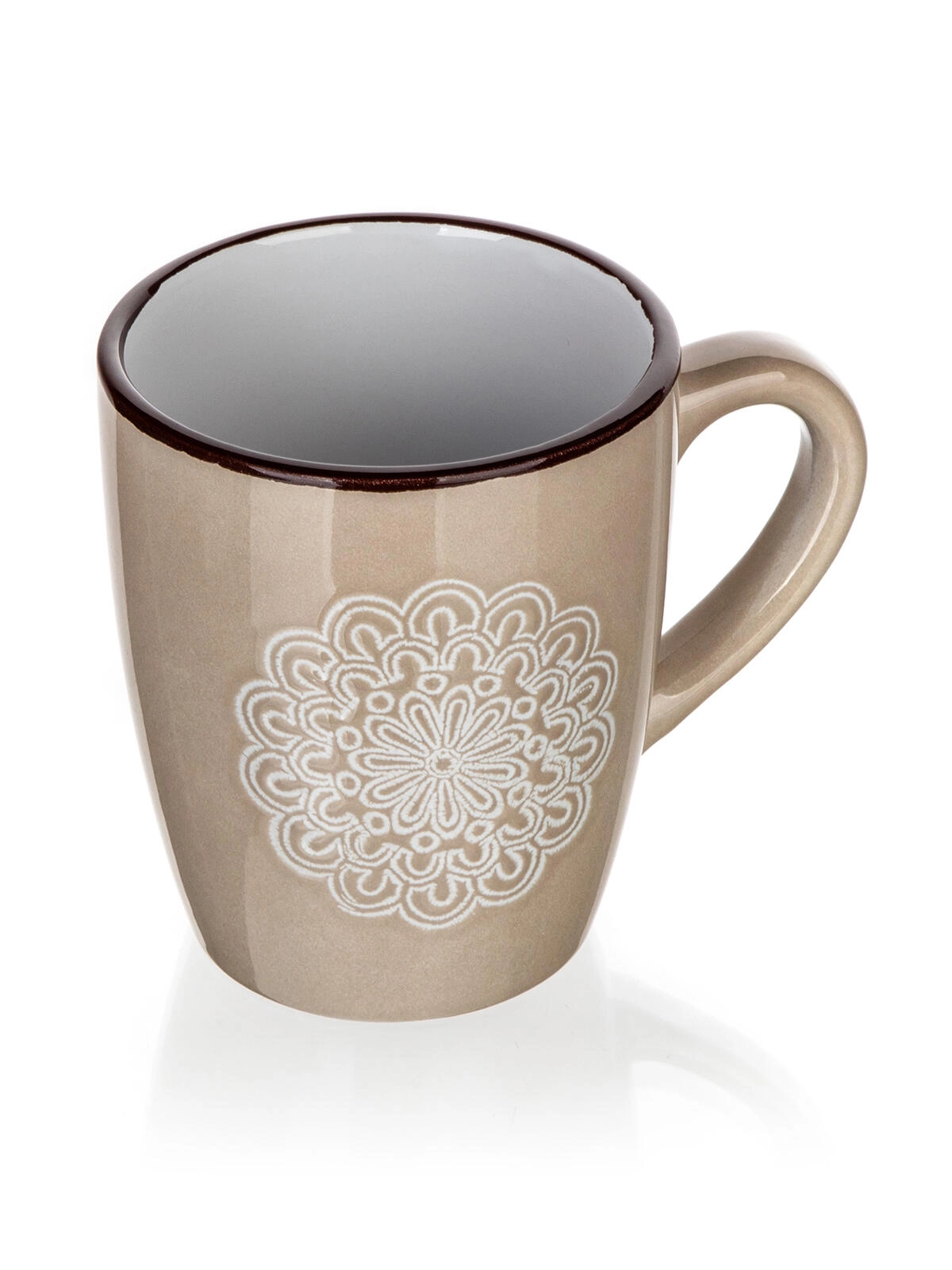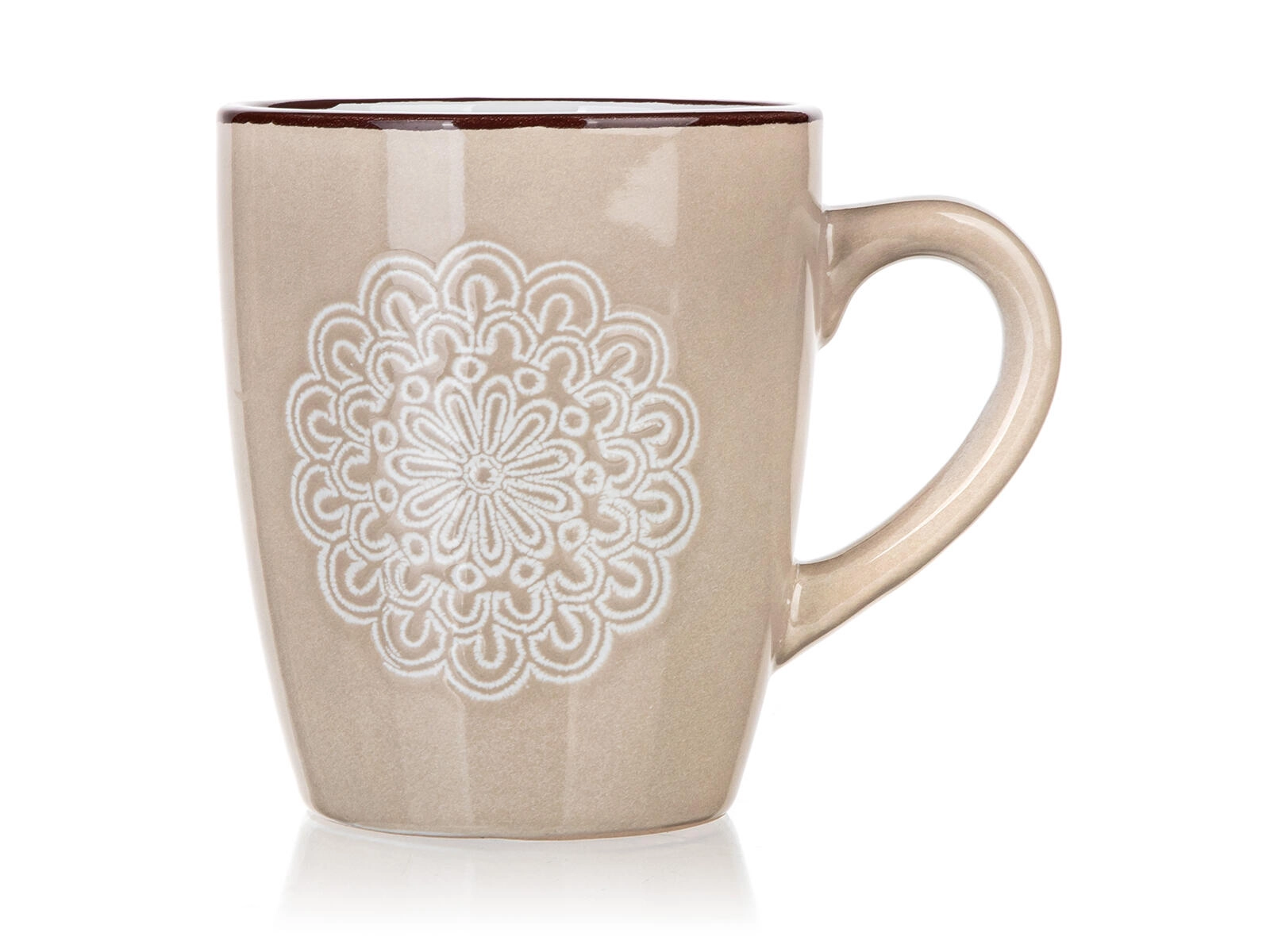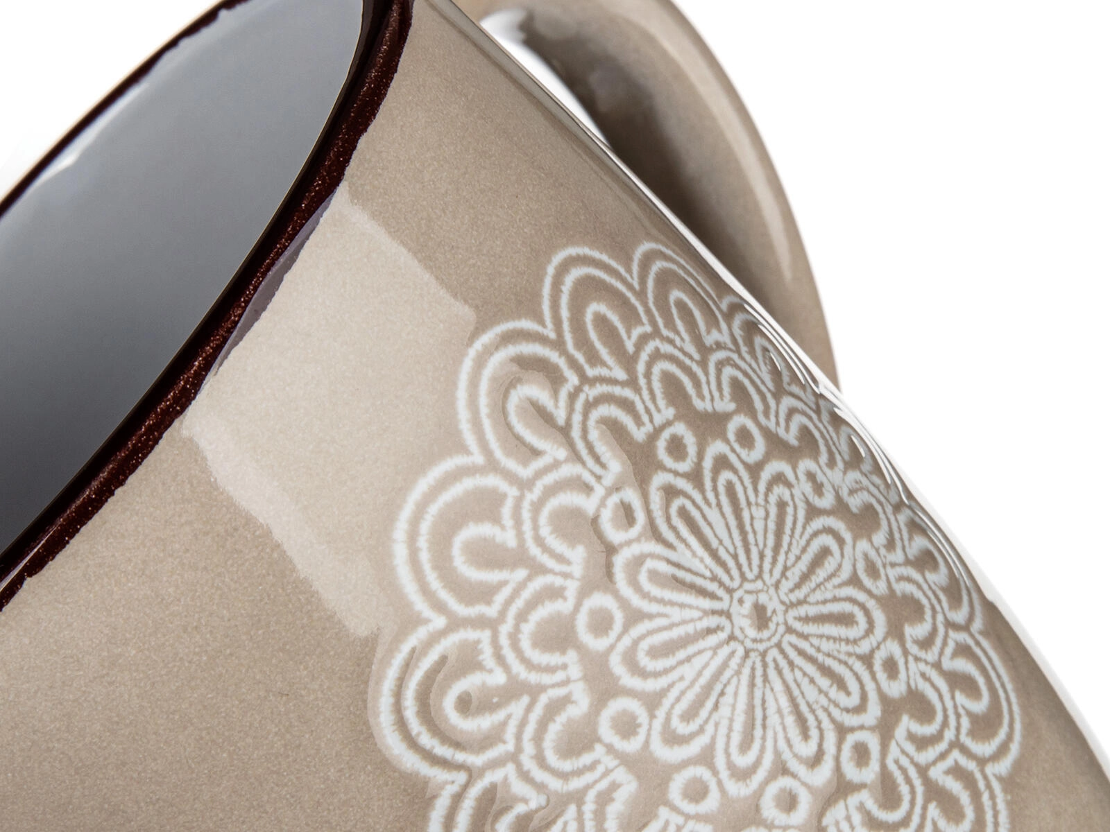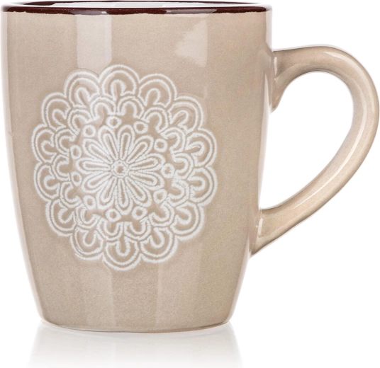 Découvrez un mug qui allie design discret et praticité au quotidien. La teinte crème et le motif dentelle (mandala) en relief apportent une élégante délicatesse à votre table, tandis que la capacité de 400 ml est idéale pour un cappuccino, un thé ou des infusions.