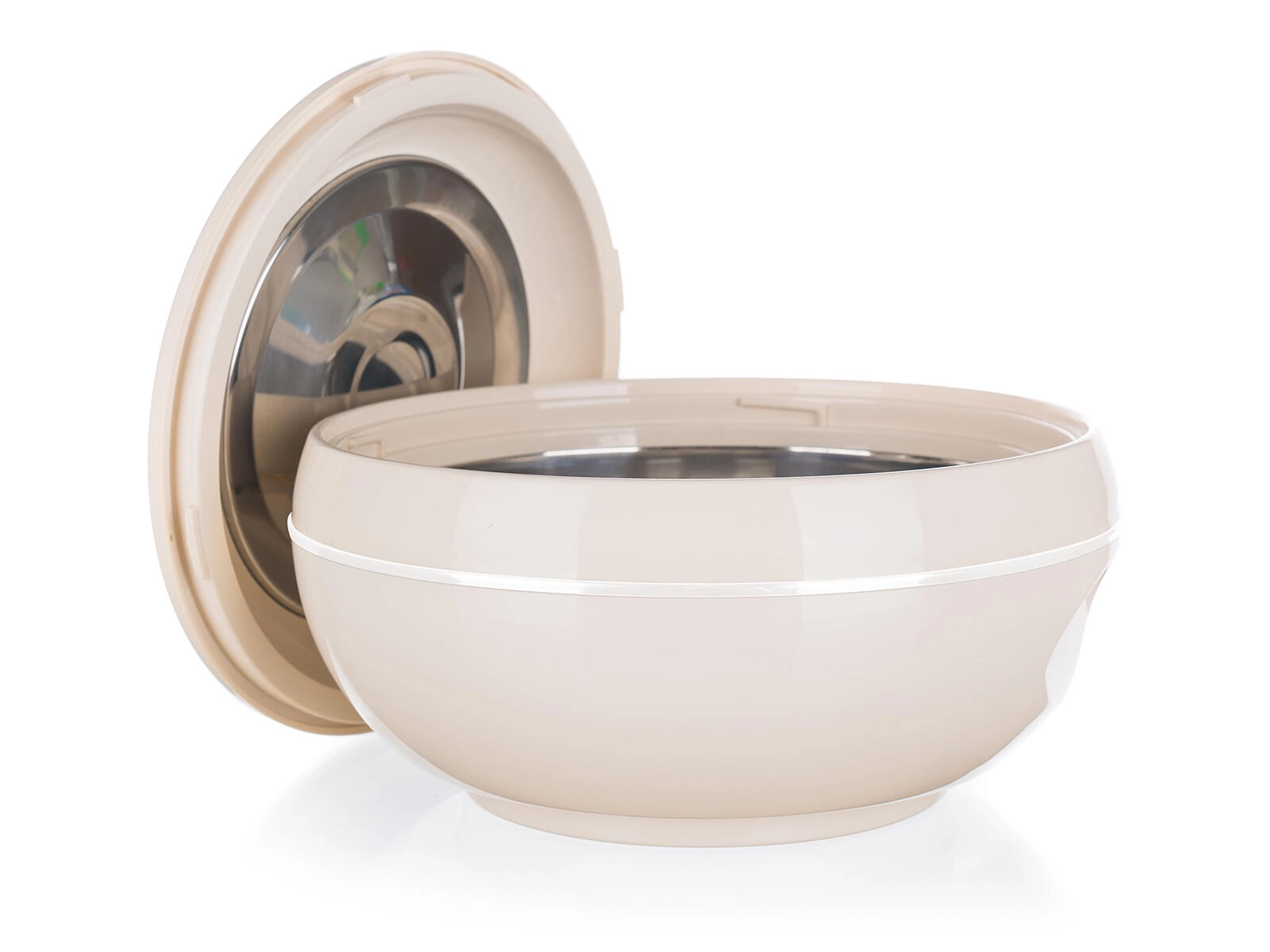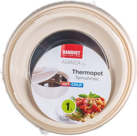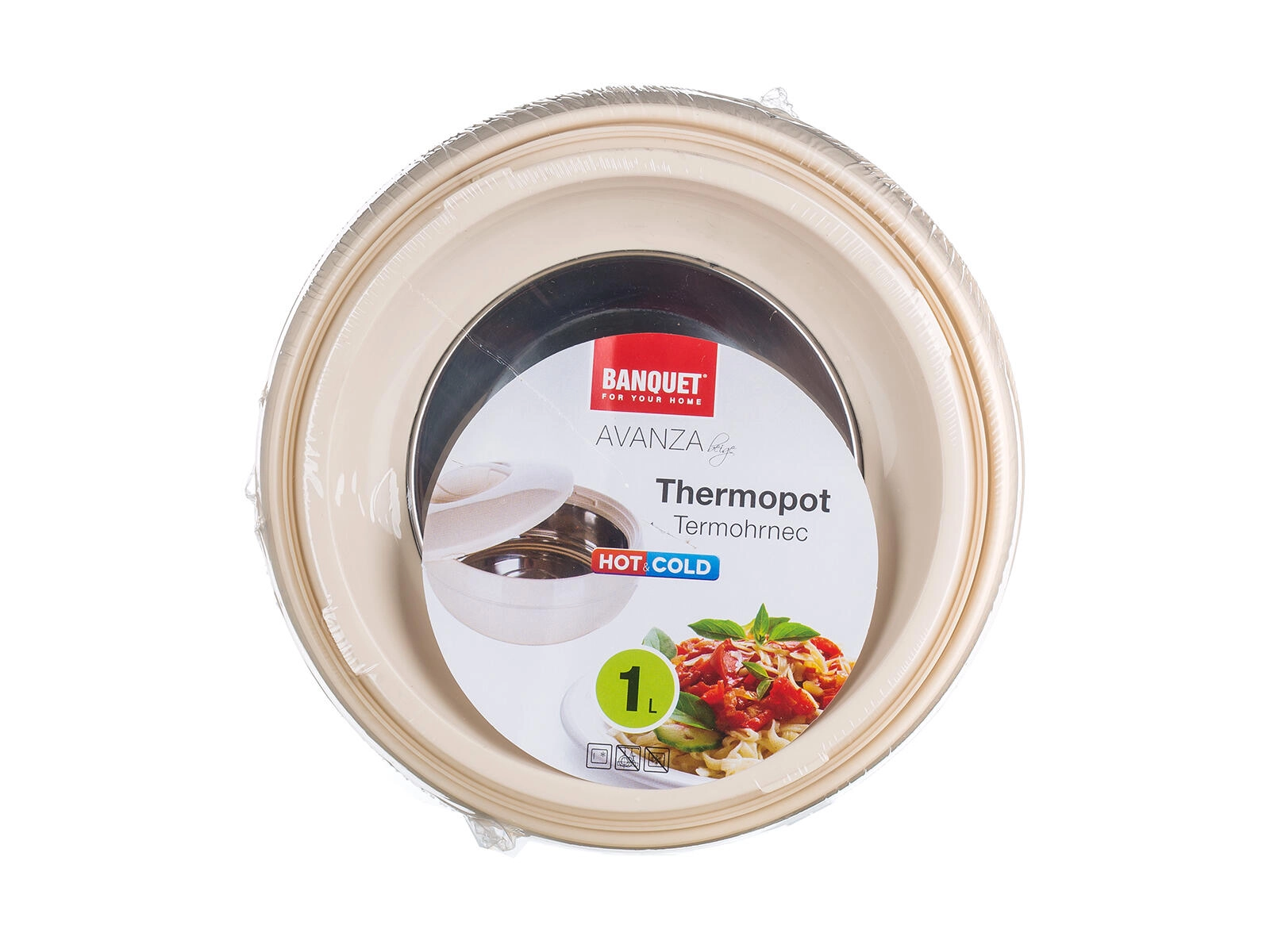 Pratique, le bol isotherme avec couvercle AVANZA d’une capacité de 1 l garde vos plats chauds ou froids plus longtemps. Il combine une doublure en acier inoxydable avec une mousse isolante PUR et une coque en plastique résistante dans une élégante couleur beige – idéal pour le service comme pour le transport des aliments.