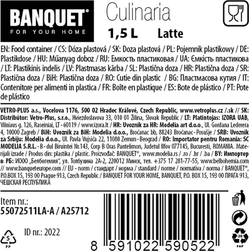 Le plastique résistant est léger, facile à entretenir et aide à conserver les aliments plus longtemps. La boîte est conçue pour un rangement stable sur étagères et dans les tiroirs, et se combine parfaitement avec d’autres boîtes pour un look de cuisine uniforme et organisé.