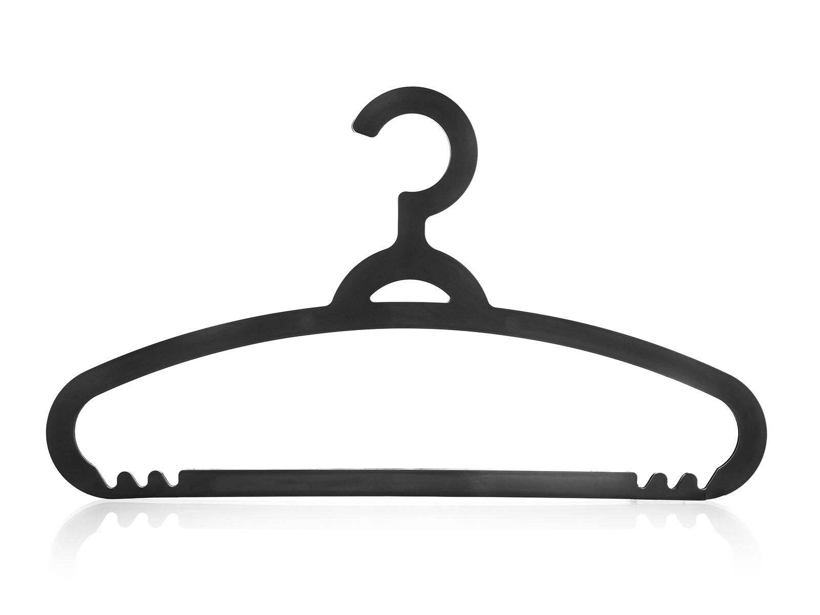 Gardez votre armoire parfaitement organisée grâce à un lot de cintres en plastique d’un élégant coloris noir. Les cintres disposent de encoches pour bretelles et d’une barre inférieure pour pantalons ou foulards, afin que les vêtements restent en place et sans faux plis.