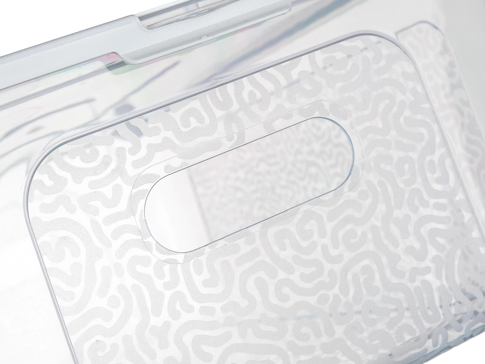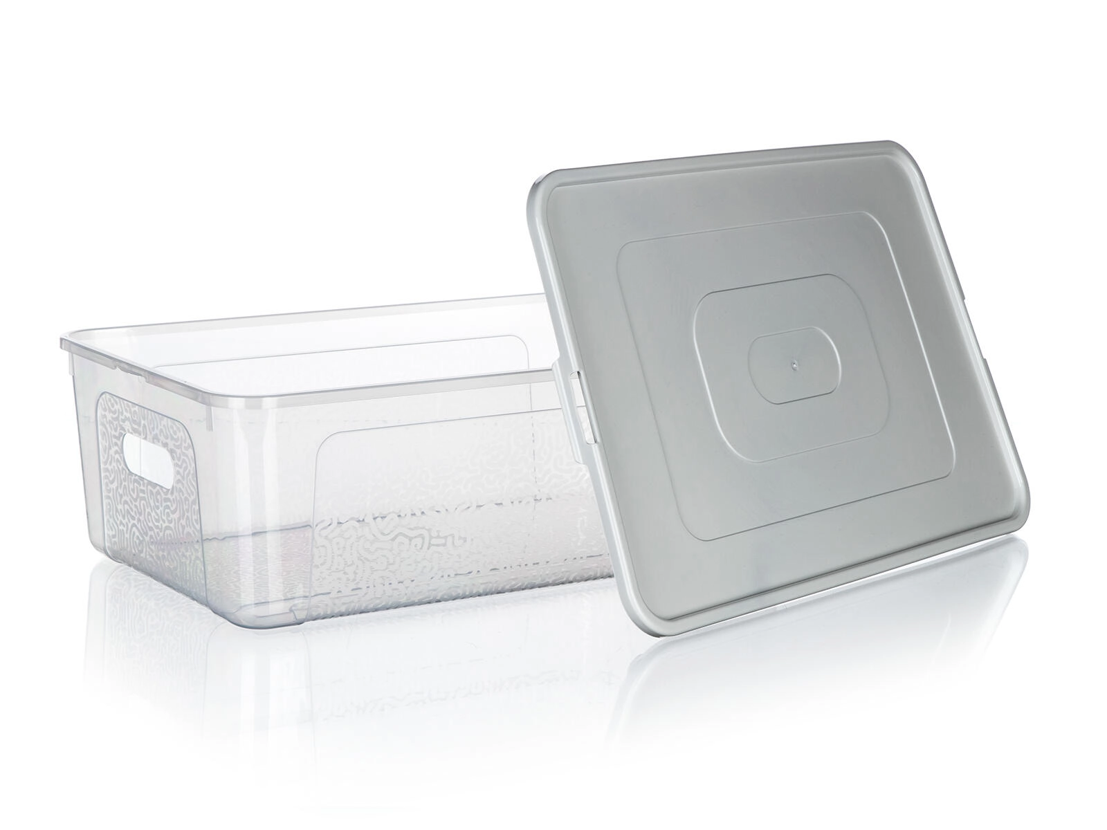 Organisez votre maison, votre bureau ou la chambre des enfants avec cette boîte de rangement polyvalente de 11 litres. La conception transparente facilite l’orientation rapide parmi les objets stockés, tandis que le couvercle solide protège le contenu de la poussière et des saletés. Les poignées intégrées sur les côtés permettent un transport confortable et sécurisé.
