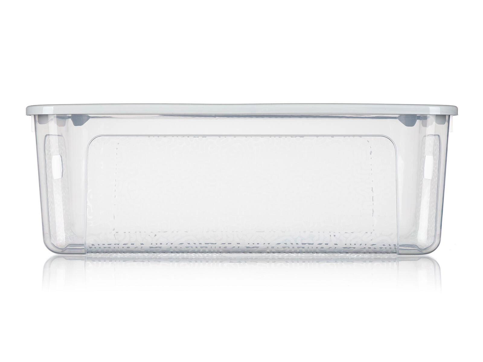 Boîte transparente, couvercle gris/blanc (selon variante)