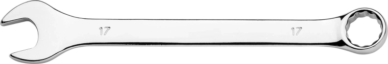 Clé mixte 17 mm universelle pour un usage professionnel et domestique. Fabriquée en acier allié 31CrV3 pour une haute résistance, une longue durée de vie et une transmission fiable de la force sans déformation.