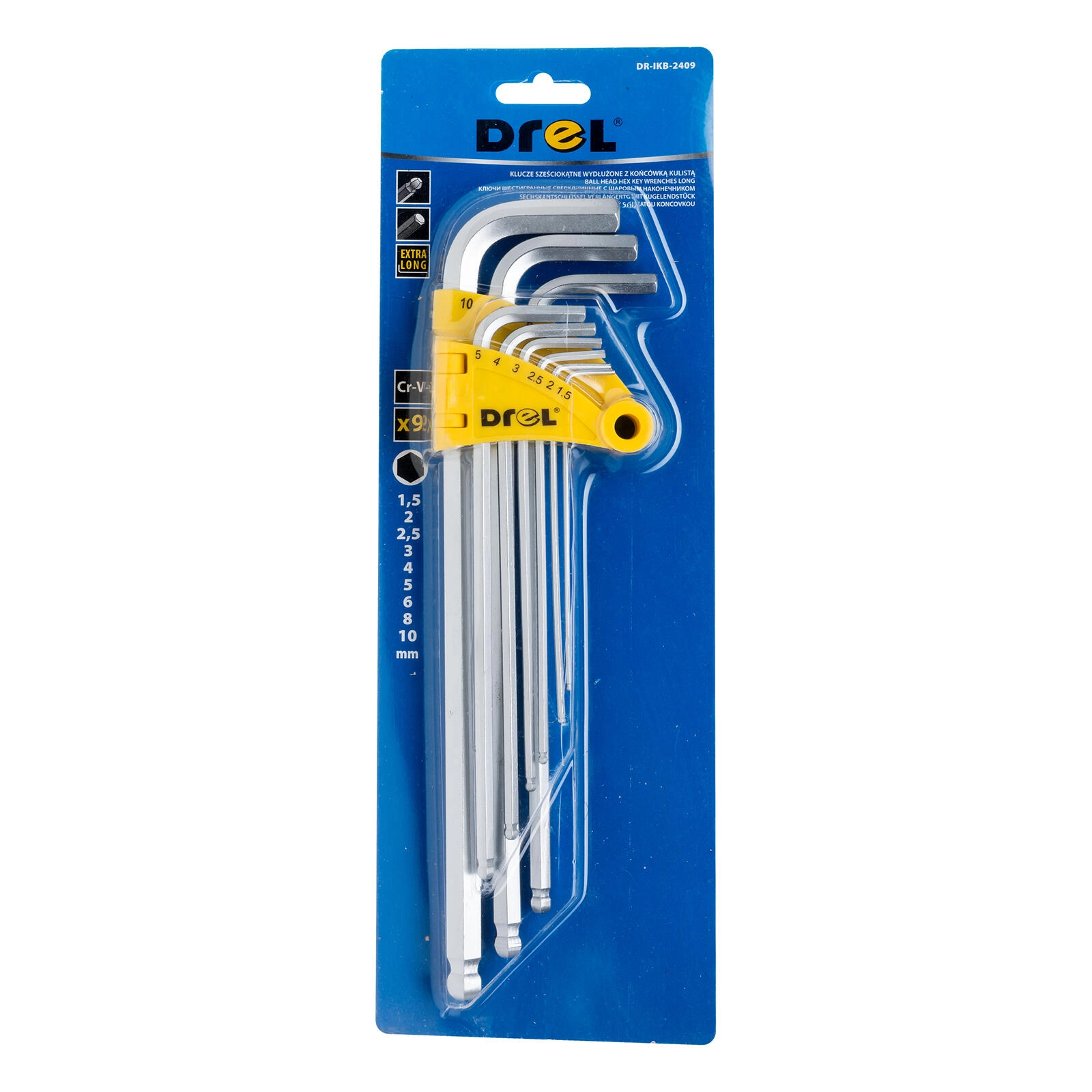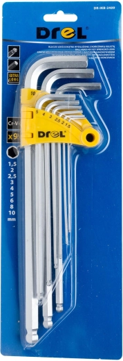 Jeu de clés Allen longues avec embout à bille 1,5–10 mm, 9 pièces DREL