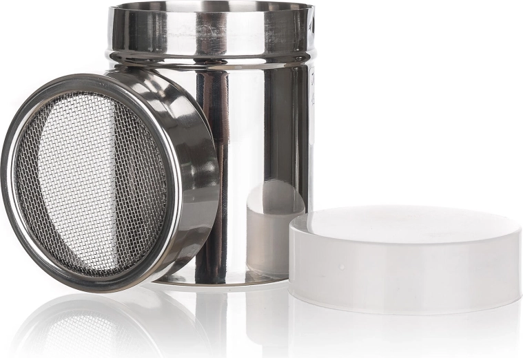 Le tamis fin est parfait pour le sucre glace, le cacao, la cannelle ou le café finement moulu. Grâce à ses dimensions compactes, la saupoudreuse convient aux foyers, cafés et pâtisseries et est idéale pour sublimer desserts, cappuccinos et petits-déjeuners.
