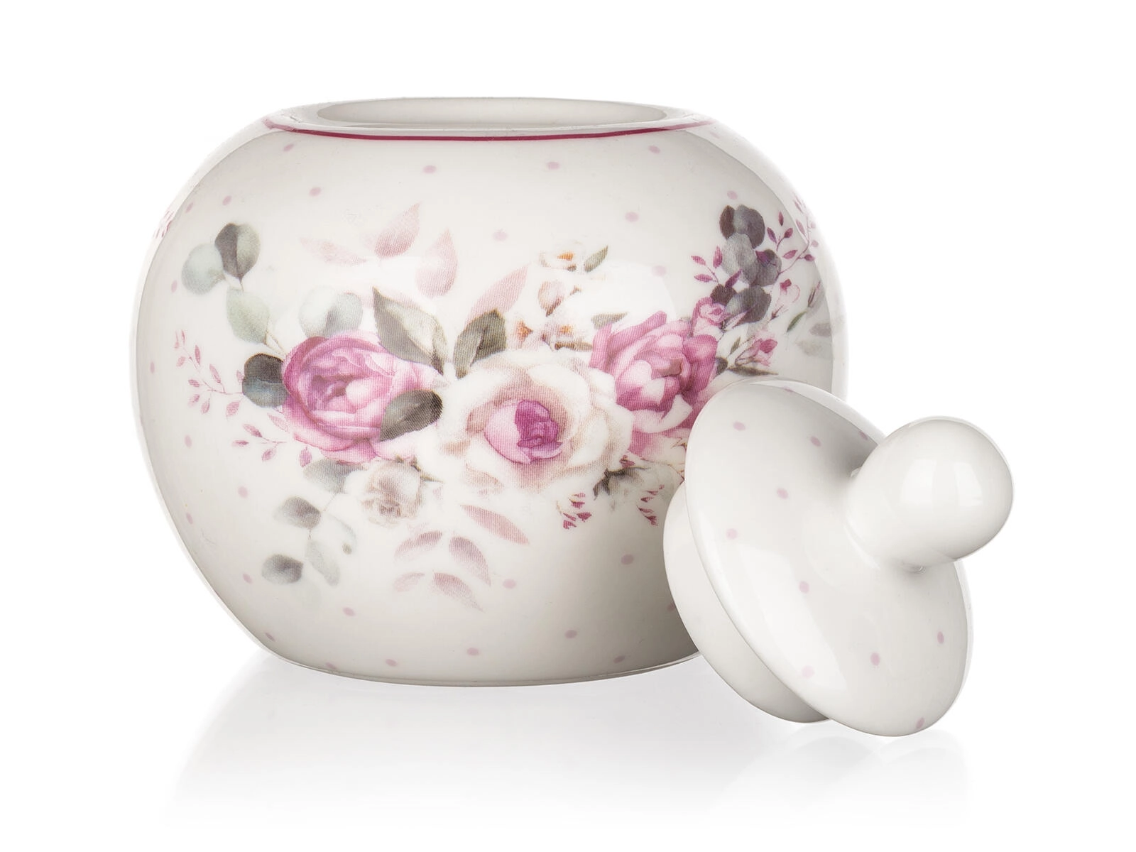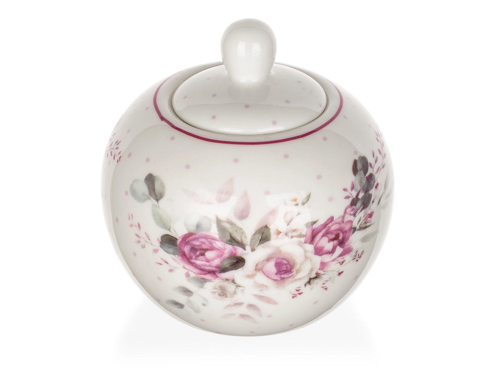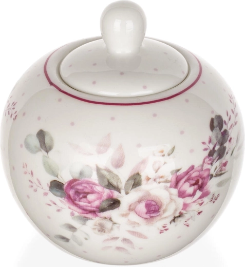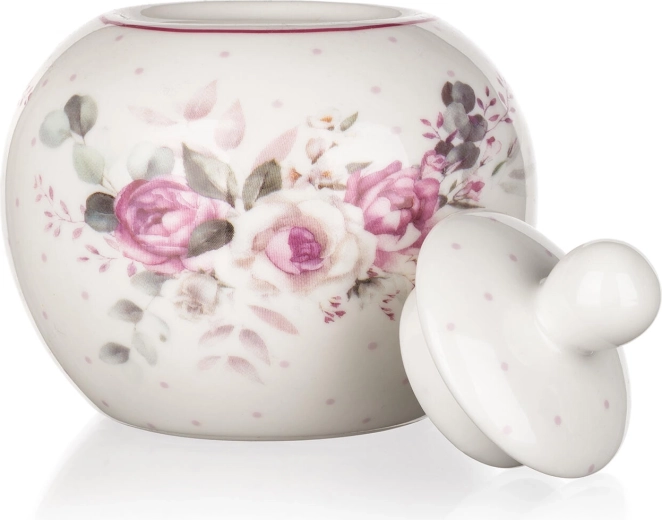 Élégant sucrier en céramique ROSE d’une capacité de 280 ml, idéal pour la table au quotidien comme pour les occasions spéciales. Il séduit par son décor floral romantique, son couvercle pratique avec poignée et son entretien facile – compatible lave-vaisselle. Parfait pour accompagner le service du café et du thé, et peut être coordonné avec d’autres produits du même décor.