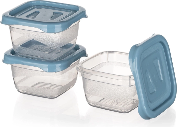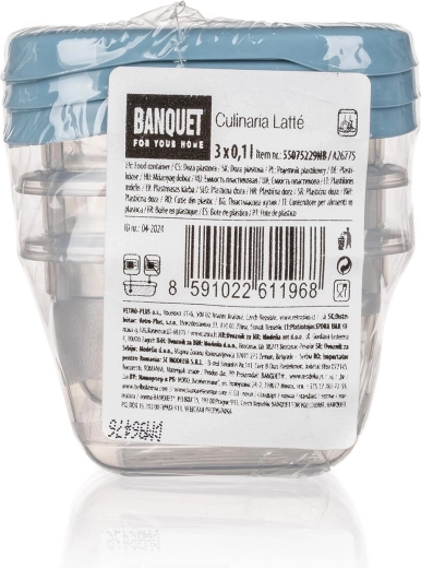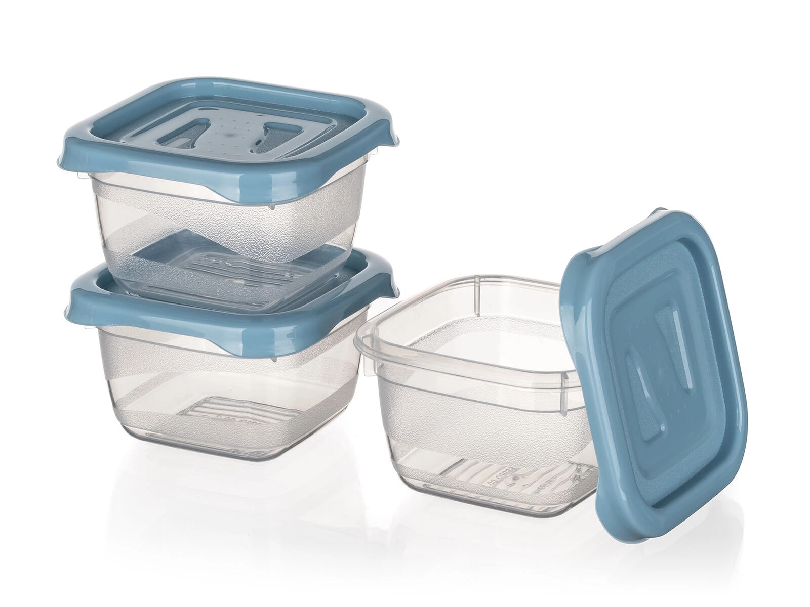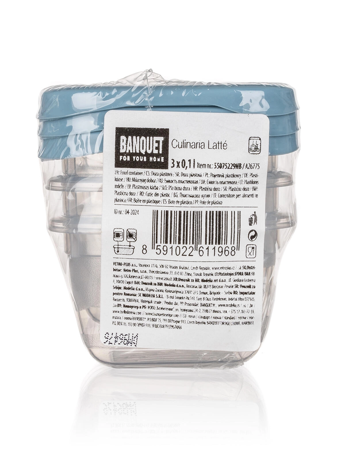 Un set compact de trois boîtes carrées CULINARIA d’une capacité de 0,1 l, idéal pour le rangement de petites portions, sauces et en-cas. Les couvercles pratiques teinte nordic blue ferment hermétiquement, les boîtes sont compatibles lave-vaisselle, micro-ondes et congélateur et grâce au plastique transparent, vous voyez toujours le contenu.