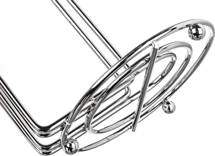 Élégant porte-papier toilette avec support en finition chromée, combinant rangement pratique jusqu’à 4 rouleaux (3 dans le support + 1 sur le bras) et gain de place. Sa structure métallique stable avec finition brillante apporte un style moderne à votre salle de bain et assure un accès facile aux rouleaux à tout moment.