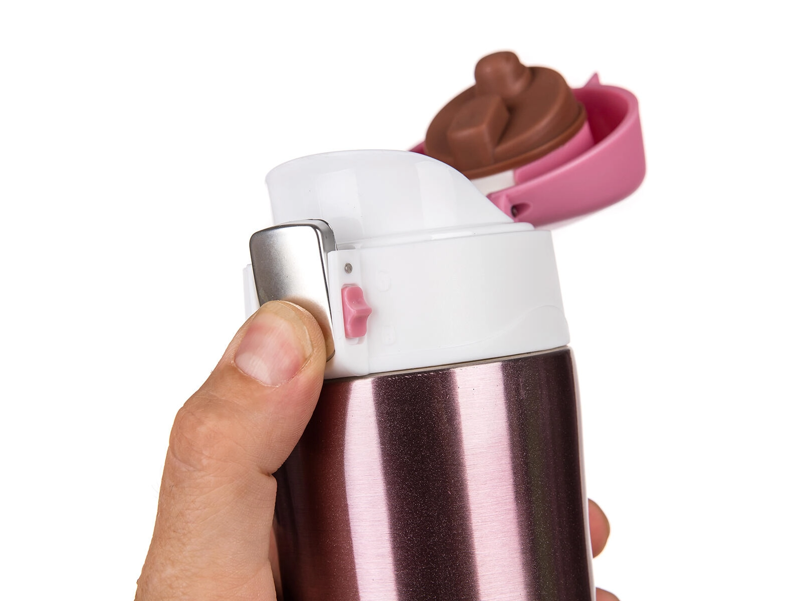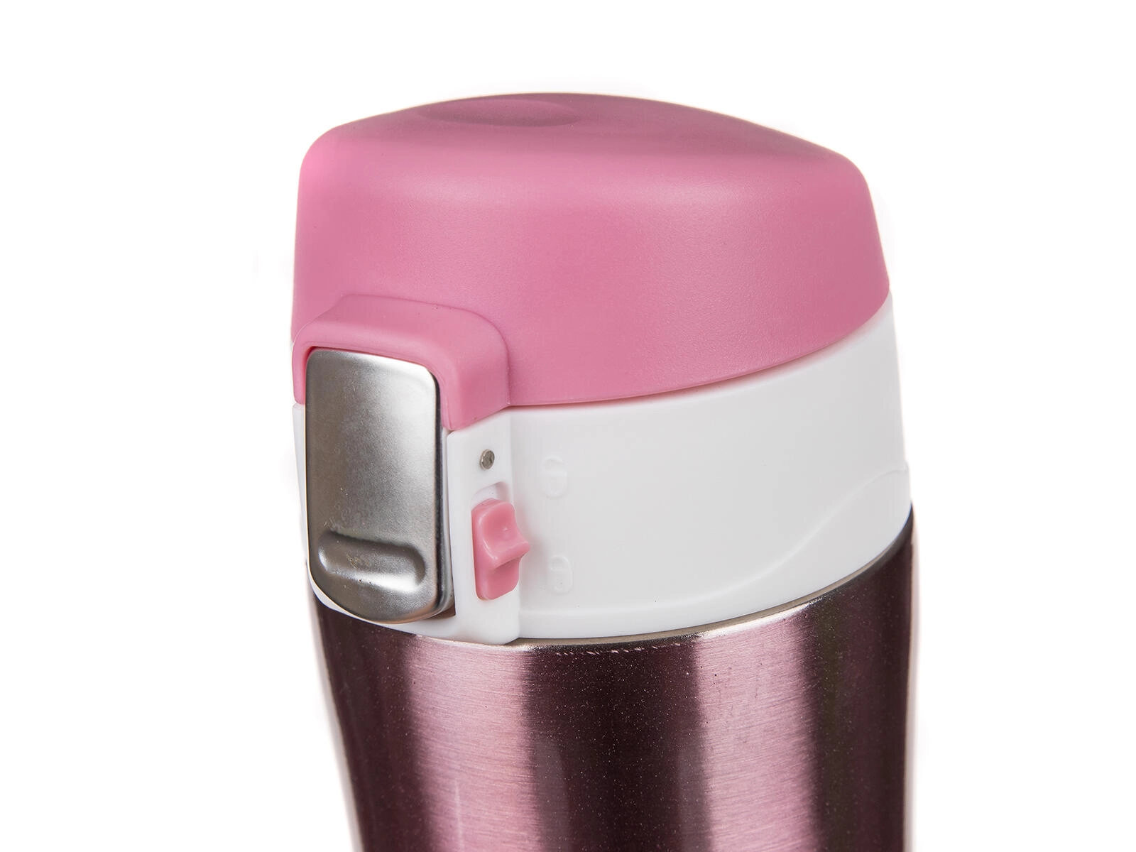 Thermos de voyage élégant en acier inoxydable d’une capacité de 0,43 l en couleur rose métallisé, qui garde votre boisson chaude ou froide plus longtemps grâce à sa conception à double paroi sous vide. Le couvercle basculant avec loquet et verrou anti-ouverture involontaire assure une boisson confortable et sûre en déplacement sans fuites.