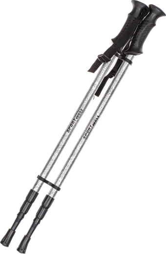 Pour plus de confort lors des longues randonnées, les bâtons disposent d’une poignée profilée en caoutchouc avec dragonnes réglables et d’une confortable rallonge en mousse pour modifier la prise en main lors des fortes montées ou descentes. La pointe en acier assure la sécurité sur sols meubles et irréguliers, l’embout en caoutchouc est idéal pour les surfaces dures et urbaines, et les rondelles se prêtent à une utilisation toute l’année dans des conditions variées.
