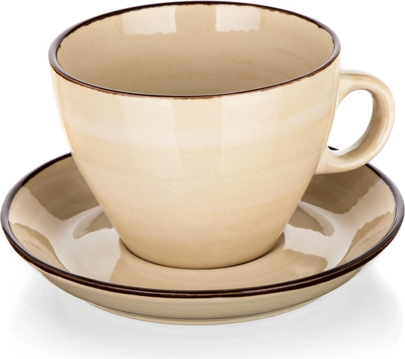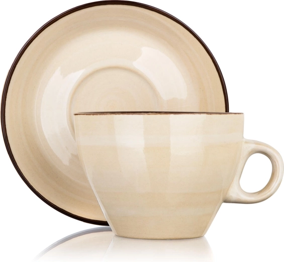 La capacité de 290 ml est idéale pour le cappuccino, le thé ou le café filtré. La soucoupe recueille les éventuelles gouttes et offre un espace pour une cuillère ou un petit biscuit – un choix parfait pour un usage quotidien à la maison comme au bureau.