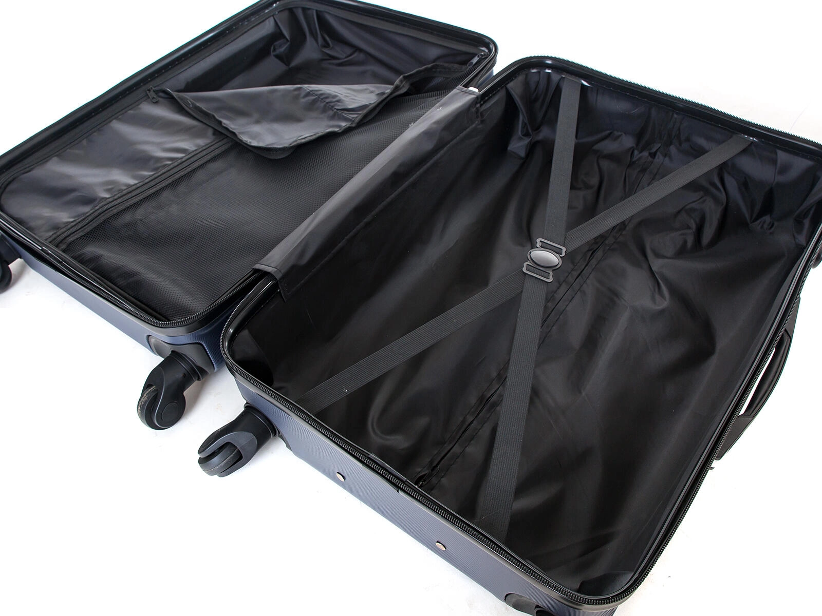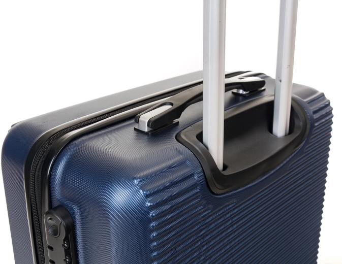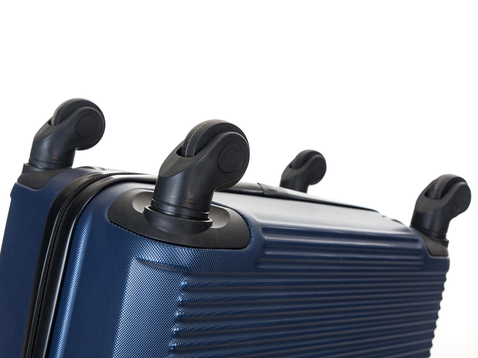Valise de voyage légère et résistante en ABS d’un élégant bleu, offrant 37 l d’espace et un déplacement confortable grâce à 4 roulettes pivotantes 360°. Poignée télescopique pratique, cadenas à combinaison et intérieur bien pensé avec cloison de séparation et sangles croisées pour garder vos affaires en sécurité et bien organisées.