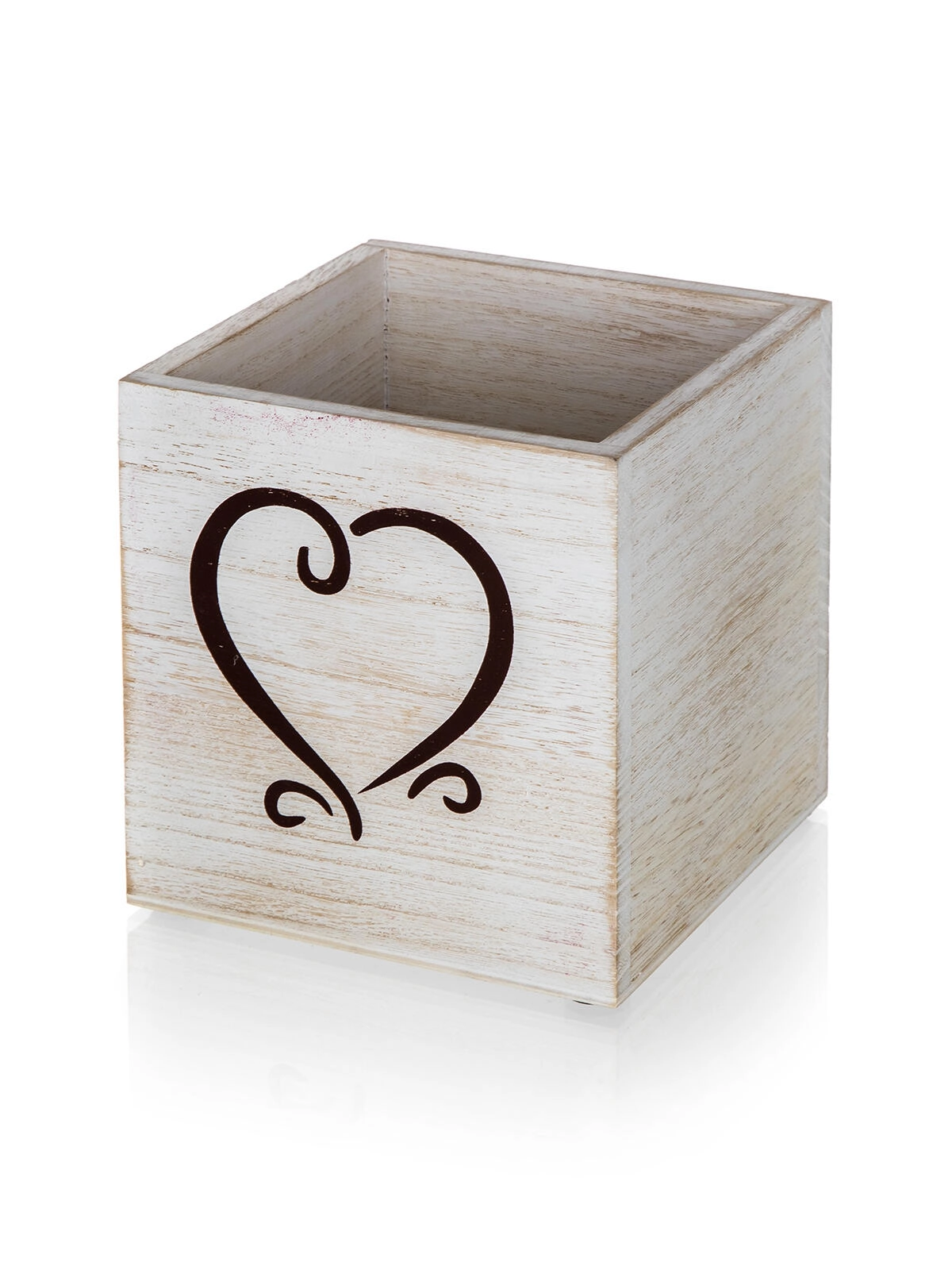 Une élégante boîte en bois avec patine blanche et motif de cœur apporte un charme rustique à votre intérieur. Elle convient parfaitement comme décoration, pot à crayons ou mini cache-pot pour fleurs séchées. Grâce à ses pieds de protection stables, elle préserve les surfaces et sa construction robuste assure une longue durée de vie.