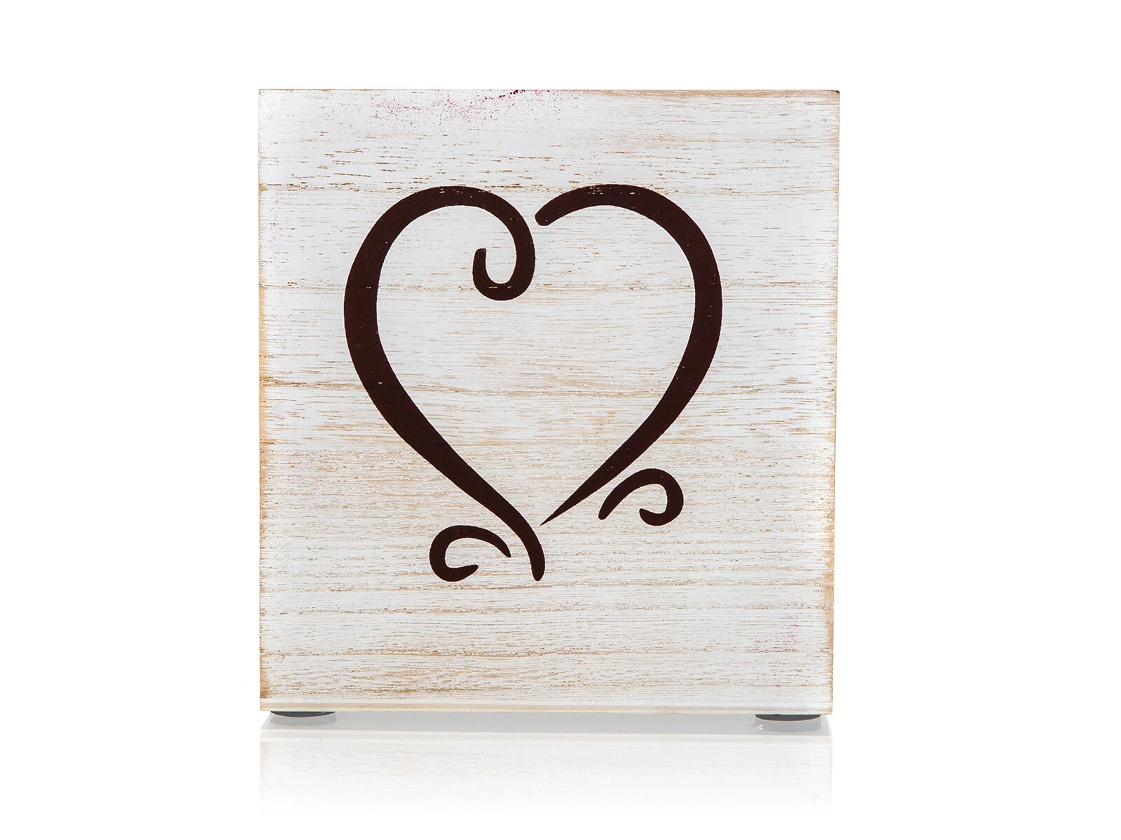 - Design rustique avec patine et motif cœur pour une atmosphère chaleureuse