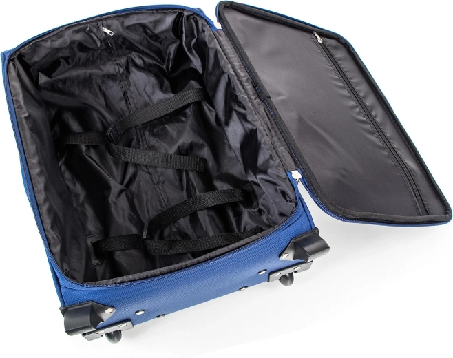 L’intérieur est équipé de sangles de maintien et d’une poche zippée dans le rabat pour une meilleure organisation. À l’avant, une spacieuse poche extérieure offre un accès rapide aux documents et accessoires. Les poignées supérieure et latérale assurent un transport facile dans les escaliers et vers les compartiments à bagages.