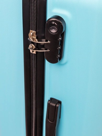 Valise rigide de voyage 68 cm bleu clair avec roulettes 360° et cadenas à code TSA