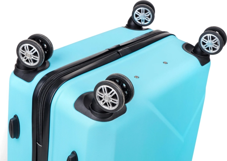 Cette valise rigide de 68 cm de hauteur (75 cm roulettes comprises) est fabriquée en ABS robuste, résistant aux chocs et protégeant vos affaires pendant le transport. Grâce aux quatre roulettes multidirectionnelles, les déplacements dans les aéroports comme dans les rues sont fluides et sans effort. La couleur bleu clair élégante apporte une touche de style à vos voyages.