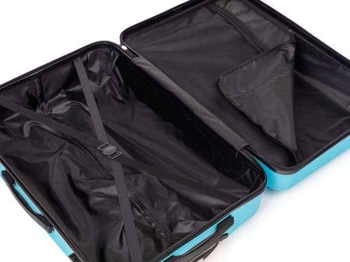 Valise de voyage légère et résistante en plastique ABS, dans une élégante couleur bleu clair, offrant un volume spacieux de 86 l pour des bagages confortables lors de voyages plus longs. Grâce à ses 4 roulettes à rotation 360°, la valise se manœuvre aisément dans tout espace. Une poignée télescopique verrouillable, plusieurs poignées pour un transport confortable et un cadenas à code assurent sécurité et confort en déplacement. À l’intérieur, une cloison séparatrice avec poche et des sangles croisées facilitent une organisation claire.