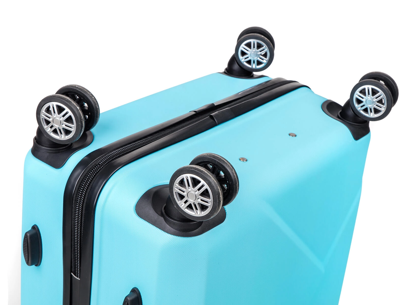 Quatre roulettes doubles pivotantes assurent un déplacement fluide et stable dans toutes les directions, vous permettant de faire rouler la valise sans effort à côté de vous ou devant vous.