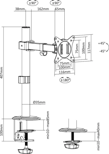 Fixez votre moniteur directement au bureau pour gagner de la place et améliorer l’ergonomie. Ce bras robuste avec pince en C offre un réglage fluide de la hauteur le long du mât, une portée confortable et une orientation précise de l’écran. Grâce à la compatibilité VESA, vous fixez aisément la plupart des moniteurs courants de 17–32".