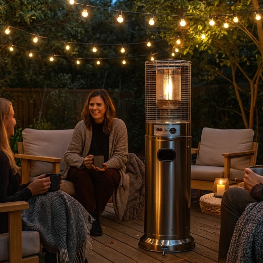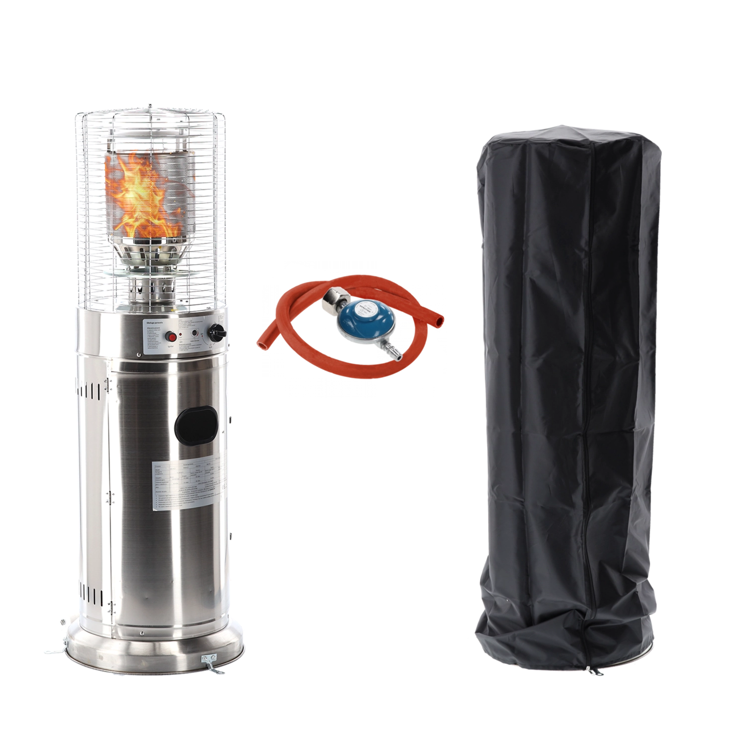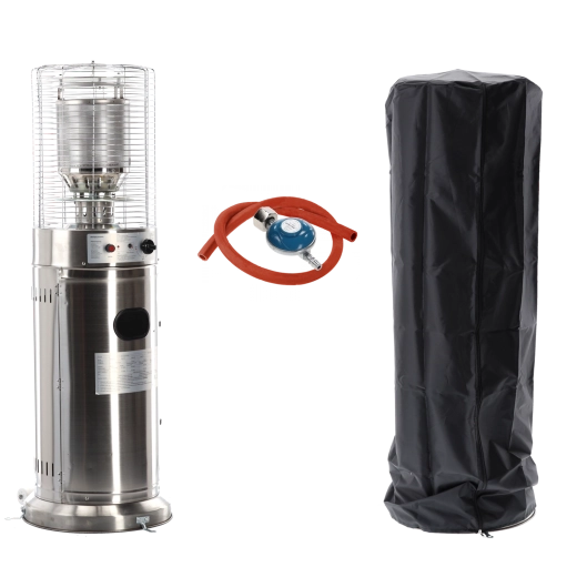 Chauffage de terrasse à gaz compact en acier inoxydable de 136 cm de hauteur, offrant une chaleur fiable pour les petites terrasses, balcons et coins détente au jardin. Grâce à l’allumage électrique, à la protection anti-basculement et à l’arrêt automatique, l’utilisation est sûre et pratique. Le colis comprend une housse premium, un tuyau et un détendeur – prêt pour une mise en service rapide.