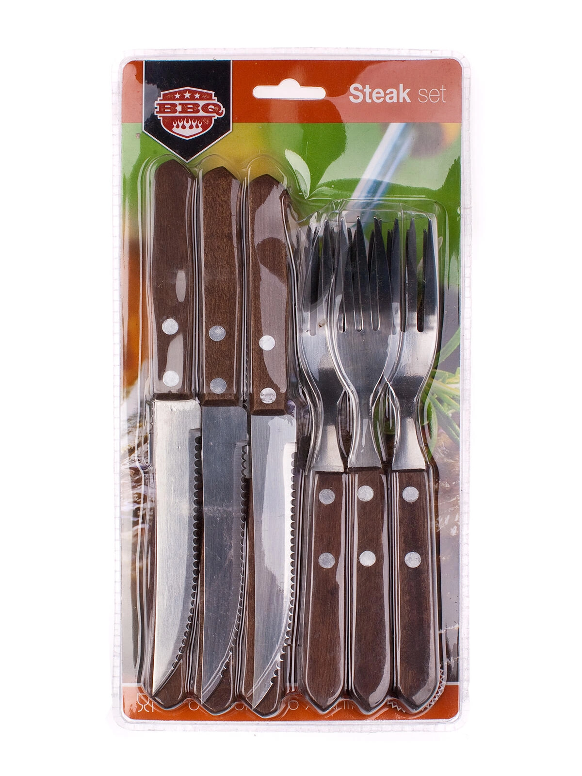 Ensemble de couverts à steak BBQ 12 pièces inox avec manche en bois foncé