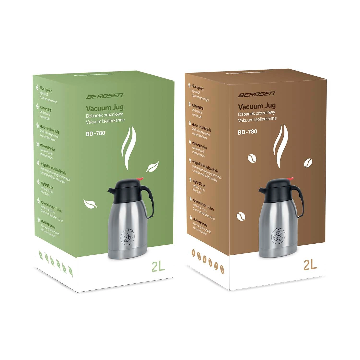 Ensemble de carafes isothermes sous vide 2 L pour café et thé BERDSEN BD-780, inox