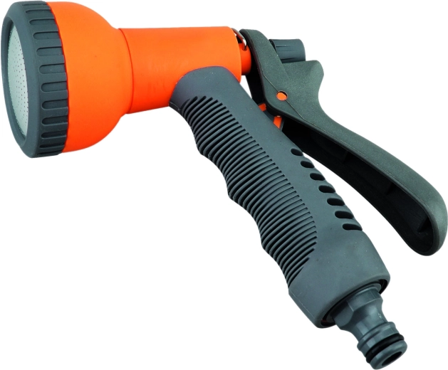 Pratique pistolet d’arrosage avec pomme pour une aspersion uniforme des pelouses, massifs et potagers. Il offre une répartition homogène de l’eau, un débit réglable, une prise en main ergonomique et une connexion universelle pour les tuyaux d’arrosage standard. Sa construction métallique résistante avec finition de surface garantit une longue durée de vie et une résistance aux intempéries.
