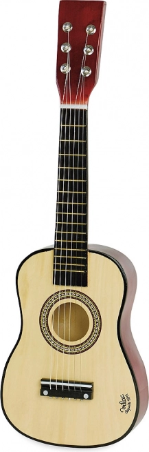Guitare acoustique pour enfants VILAC en coloris naturel. 6 cordes en nylon, fabrication en bois de qualité, médiator et corde de rechange inclus. Âge 3+.
